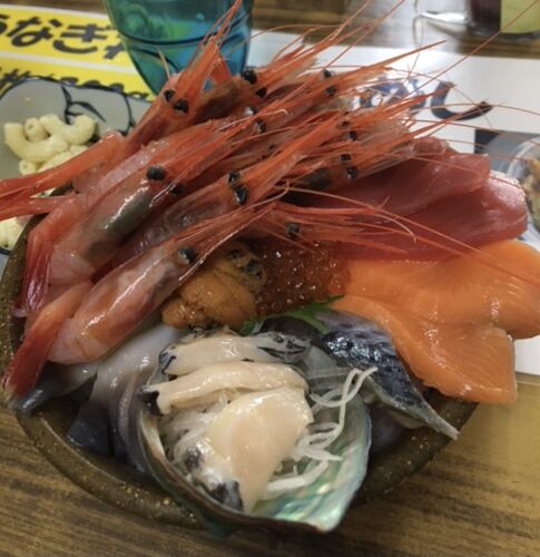 ウニ、イクラ、アワビ、サーモン、マグロ、ホタテ、ヒラメ、ホッキ、シメサバ、更にその上に折り重なるように甘エビが15尾。 グルメ系のネタはあまり得意でないし、食べ物について書いた記憶はないが、これは黙ってはいられない。なにしろ、エビで手を汚し…